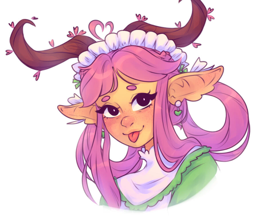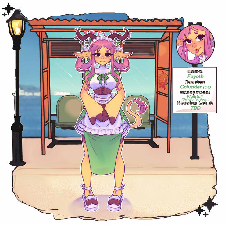 Fayeth hails from the long-forgotten species known as Gnivaders—a plant-animal hybrid people attuned to the lifelines of the earth, the language of petals, and the quiet hum of spirit. With softly glowing skin in hues of blooming coral, tree-like spiral horns draped in blossoms, and a graceful tail trailing pollen-dust, Fayeth stood out even among her own kind.She lived peacefully in a forest village hidden beneath flowering canopies, where she worked at a small, beloved tea house. Fayeth was known for her botanical skill—cultivating rare herbs, creating gentle healing infusions, and brewing teas that soothed hearts, minds, and spirits alike. Her laughter was soft, her hands warm, and her garden always in bloom.Then, one morning, the village was simply… gone.